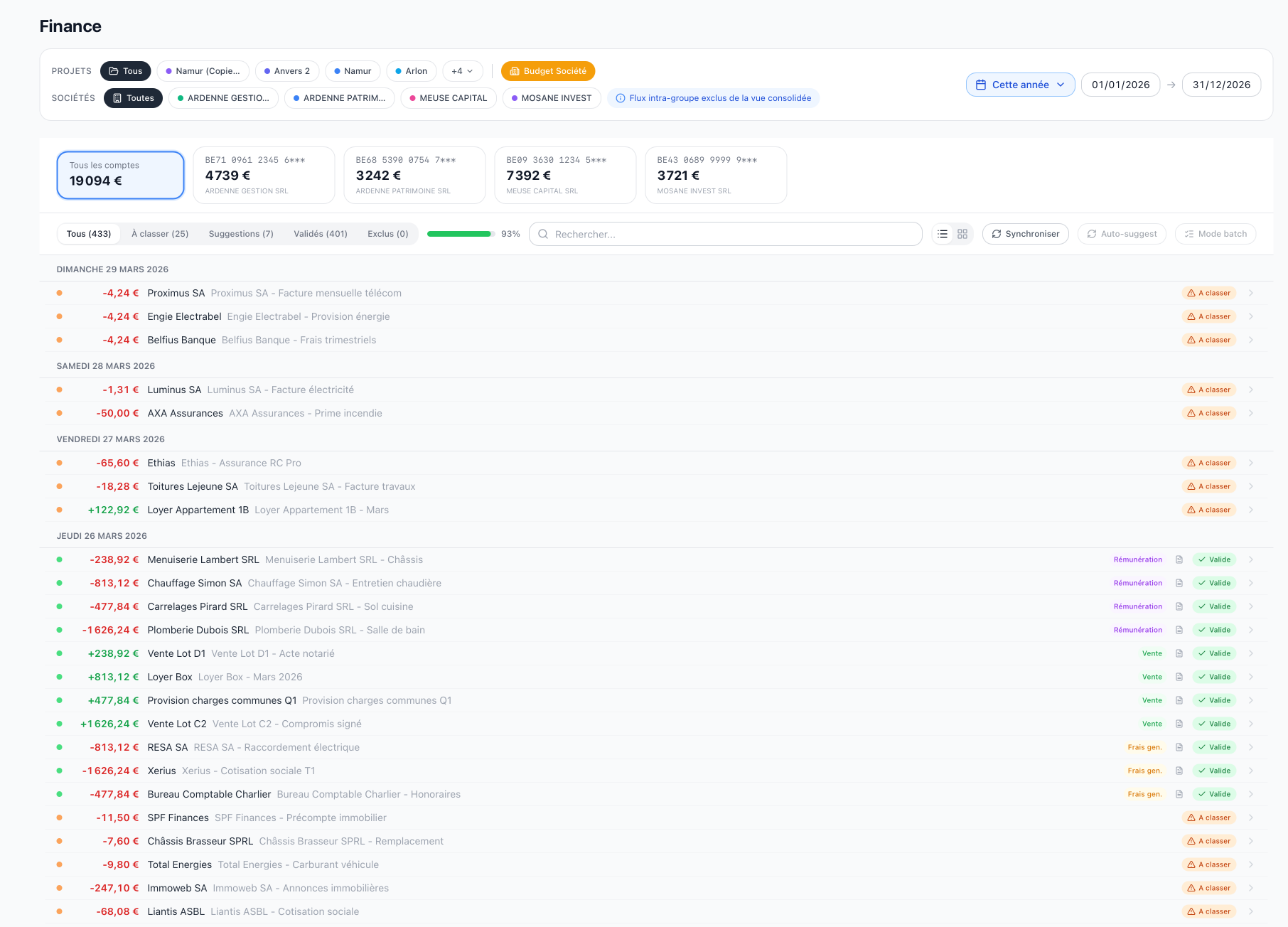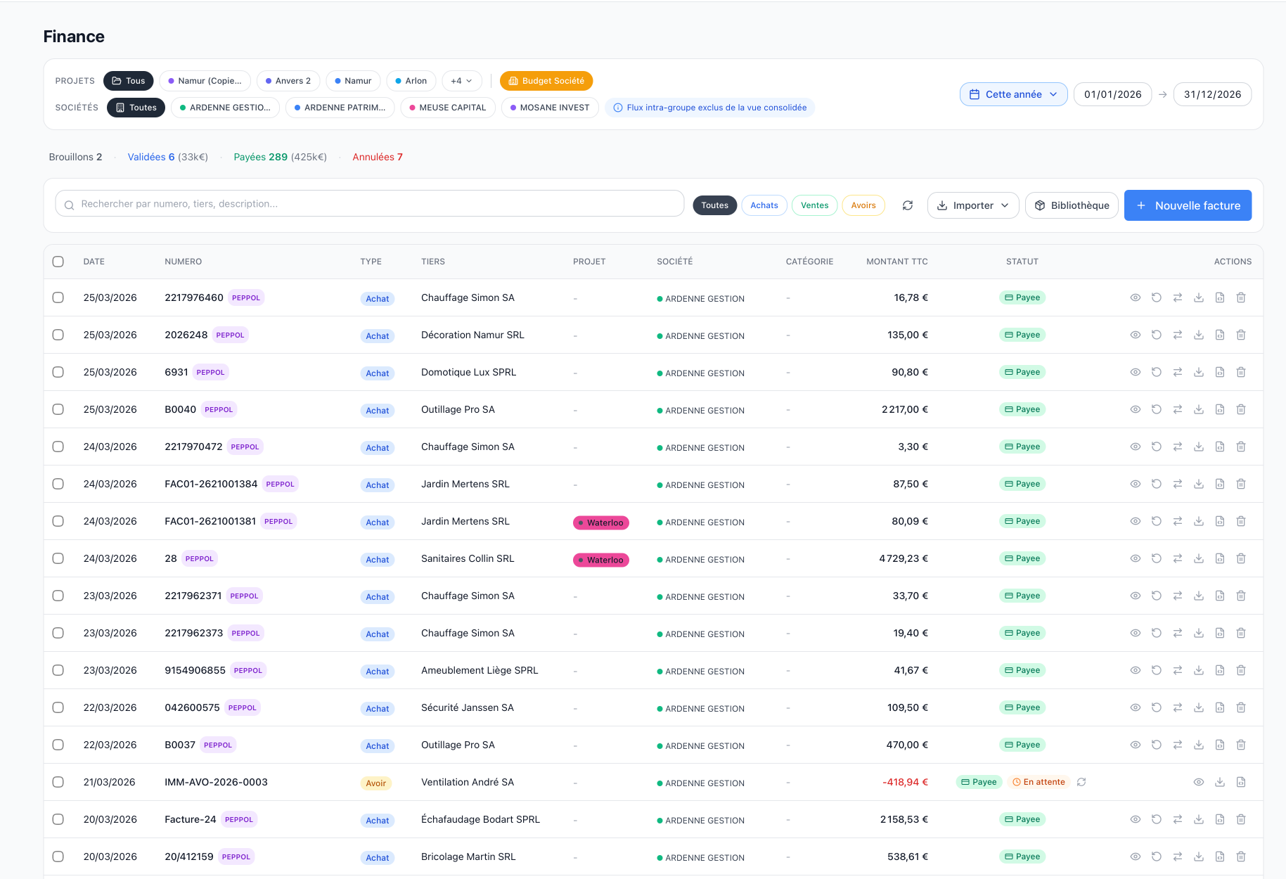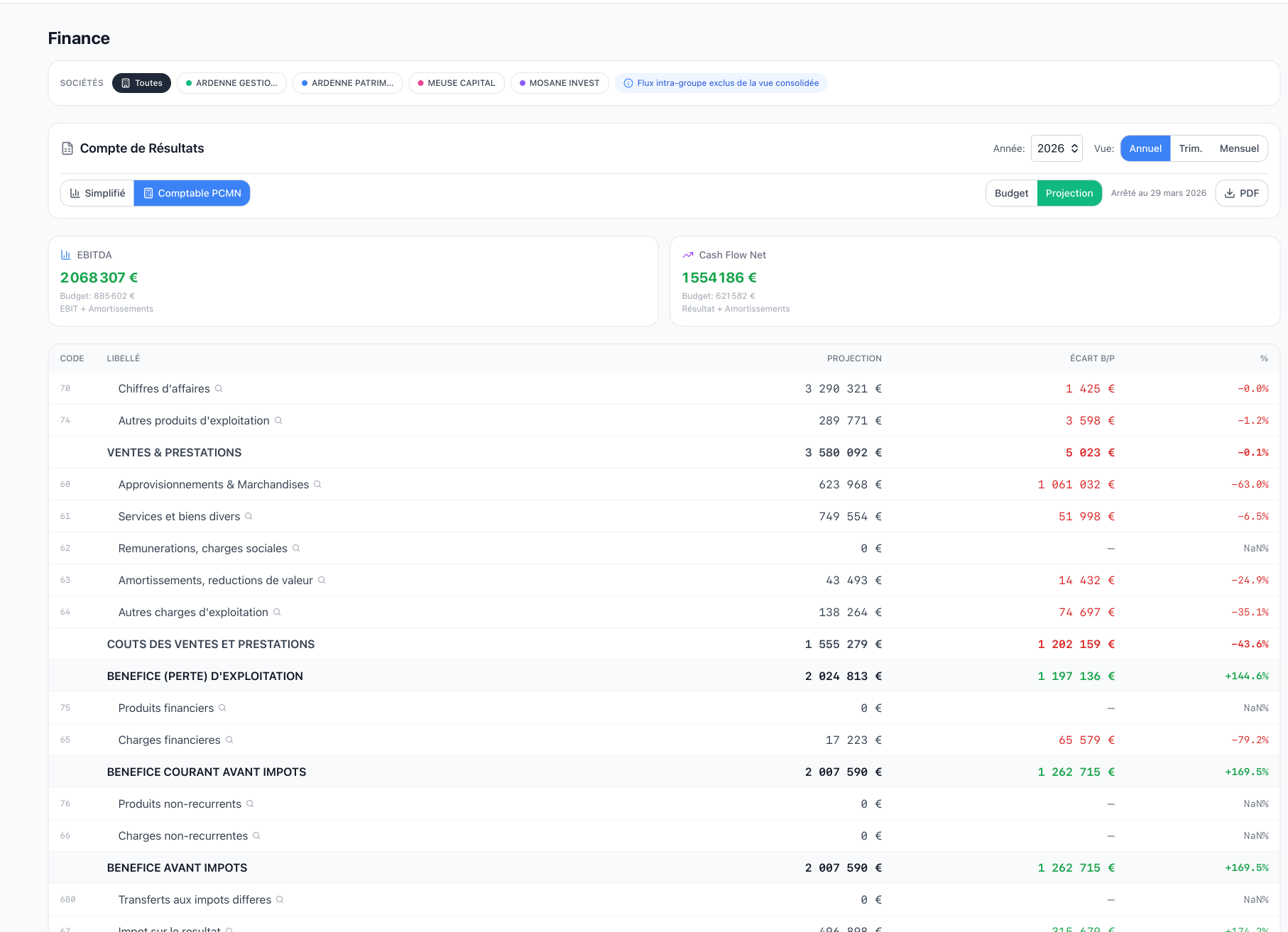 Vue consolidée multi-sociétés, flux intra-groupe exclus.